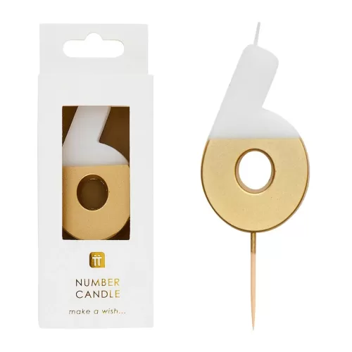 White & Gold Number Candle – 6